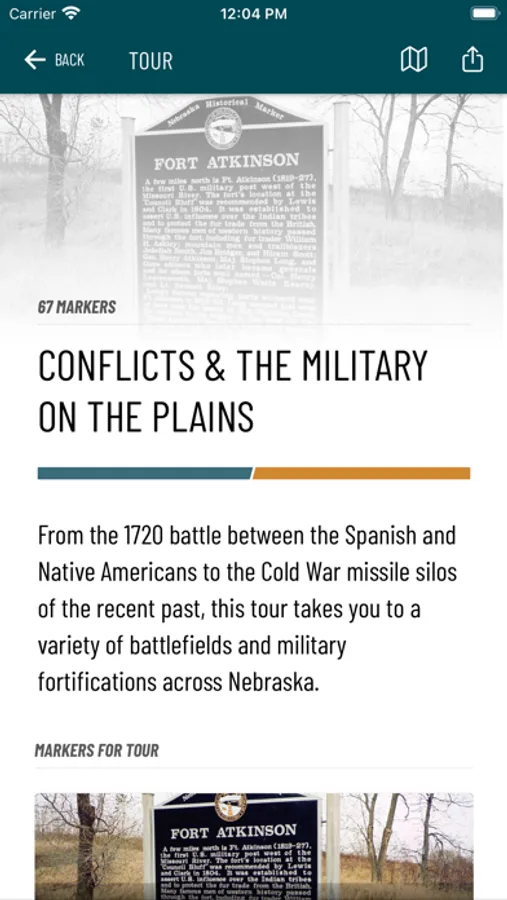 Explore Nebraska History is a free app that shares the heritage of Nebraska at your fingertips. Learn more about the interesting stories and fascinating people highlighted by our Nebraska Historical Marker program. Travel across our beautiful state in person or via your device with curated historical tours. The stories provided in this app expand upon our historical markers with each point on an interactive GPS-enabled map that includes historical information about the location, images and media from archival collections and links to additional publications.