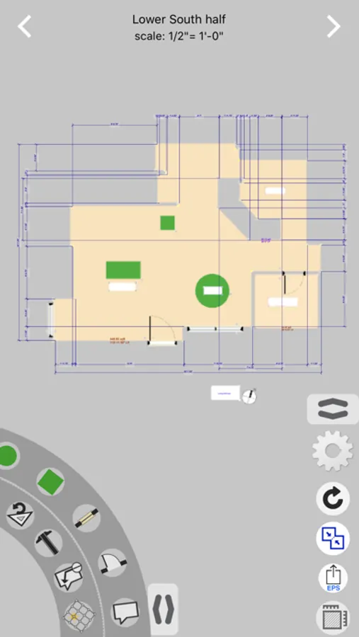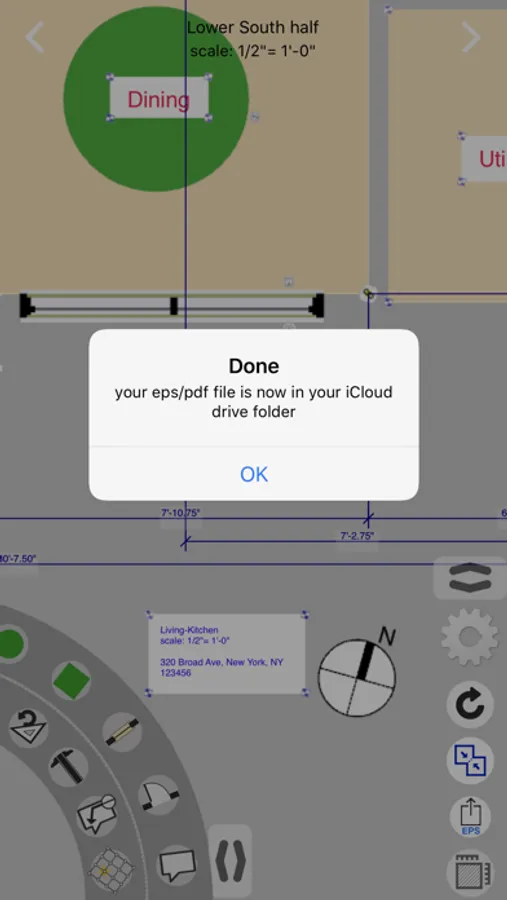 ◉ Save your finished floor plan to your iCloud Drive folder to scale, and then share to your photo stream, or email your new drawing. Also AirPrint to your printers with that correct scale and take a scale/ruler and measure even more objects in the floor plan.