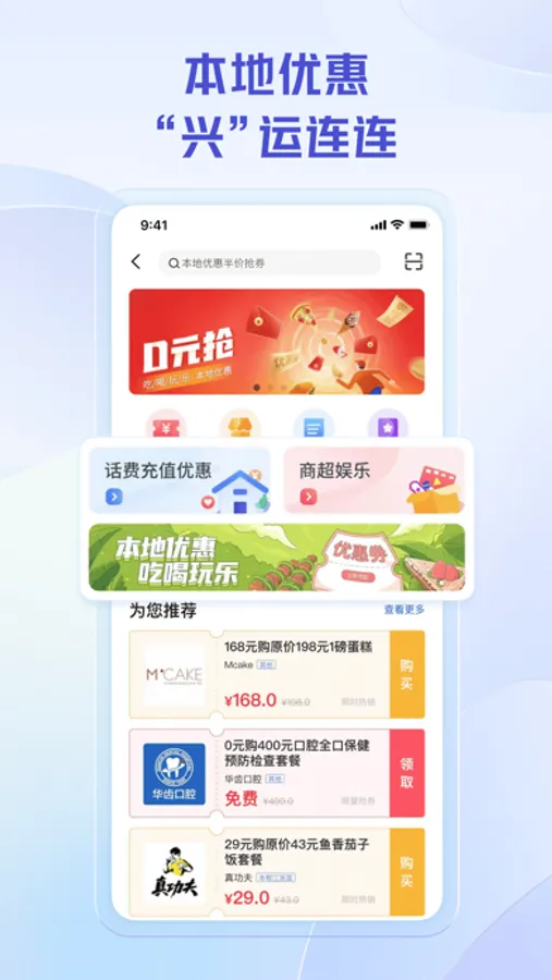 2、【本地优惠 汇聚生活】 海量优惠券最低0元抢,美食、电影、商超多种生活场景全覆盖,更有每周品牌日5折活动,趣享潮流生活!