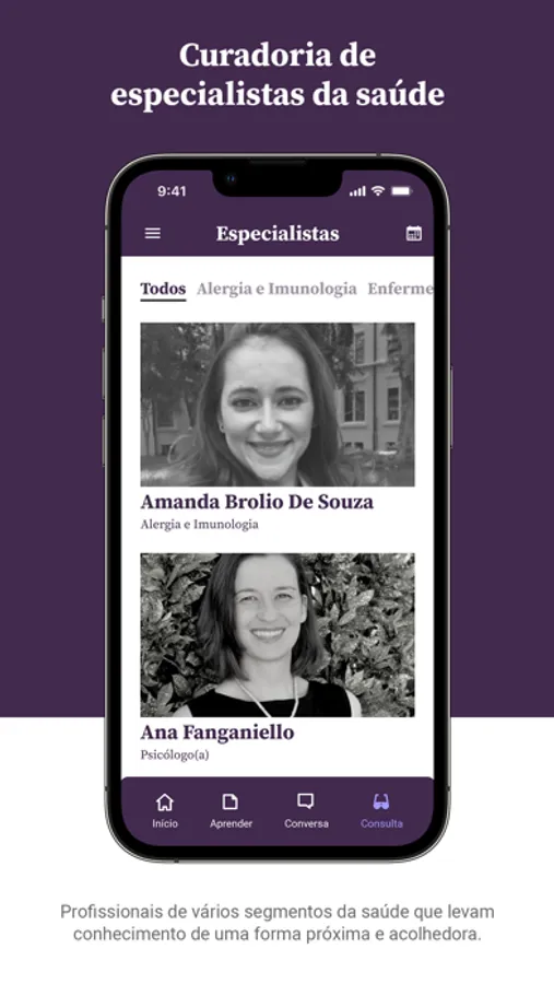 - Médicas de Família, Psicólogas, Nutricionistas e muito mais: especialistas escolhidos a dedo para cuidar da sua saúde e da sua família.
