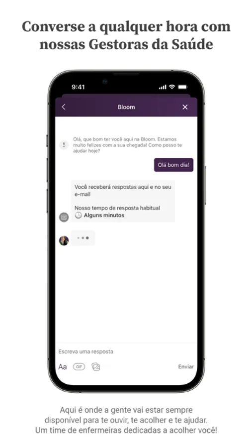 - Um Time de Cuidado disponível via chat para tirar todas as dúvidas, te acolher e te acompanhar.