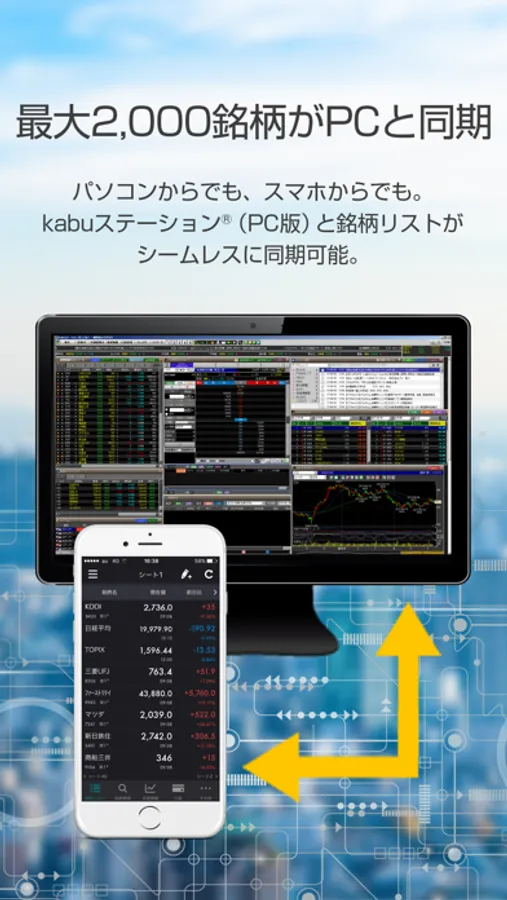 ●kabuステーション®(PC)との連携でお気に入りの銘柄情報をいつでもチェック!フリックメニューで発注までシームレスに。
