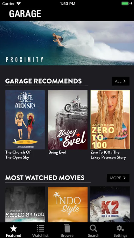 Garage boasts the world’s most comprehensive adventure sports film and TV library, representing over 3,000 titles including many of the most well known and loved brands in the space. Garage produces award winning feature films and TV shows which are offered exclusively first on our own platform.