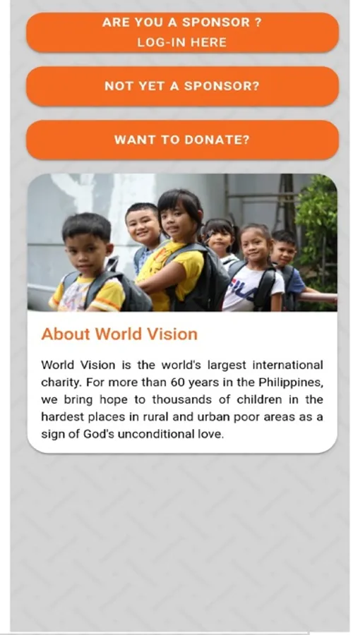 The World Vision PH mobile app is a gateway for our sponsors to connect easier with their sponsored child and their community.