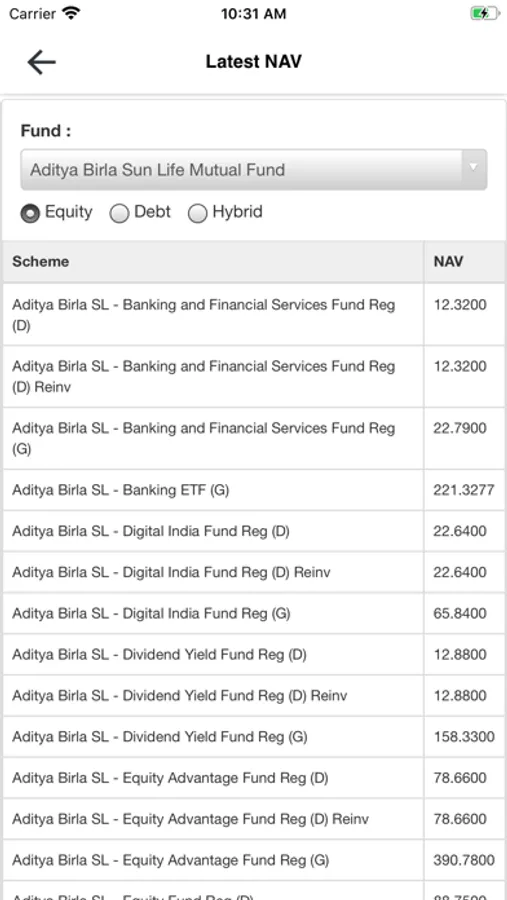 Products covered include Mutual Funds & Equity Shares.