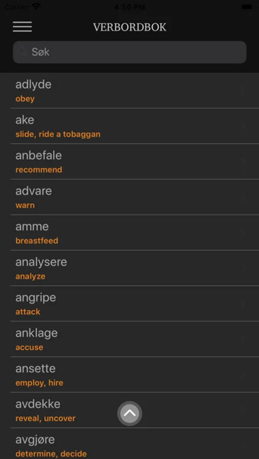 This is Norwegian Verb Dictionary (Norsk VerbOrdbok). The app containing over 600 Verbs. This is the perfect ‘kick -starter’ App for learning those difficult verbs and conjugation.