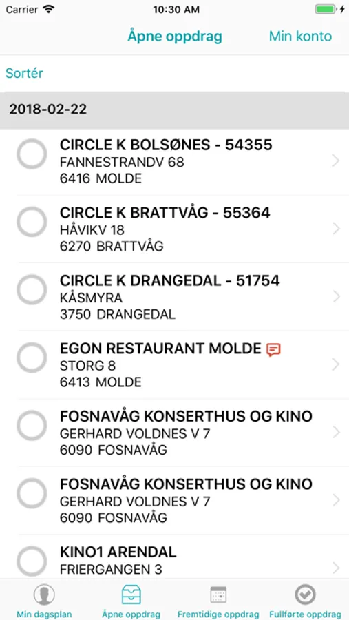App for drivers to collect return bottles. Daily schedules and scanning of assignments.