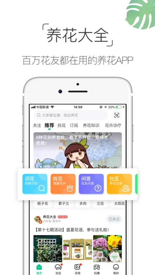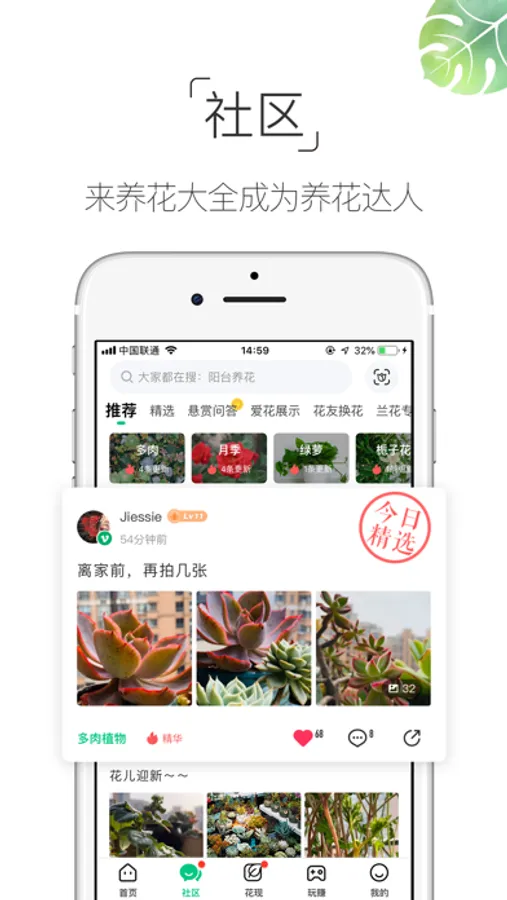 应用内有专业的内容讲解,同城花友交流,更聚集了行业专家、民间高手和养花小白,专注于打造养花人的圈子,成为养花人的大本营。