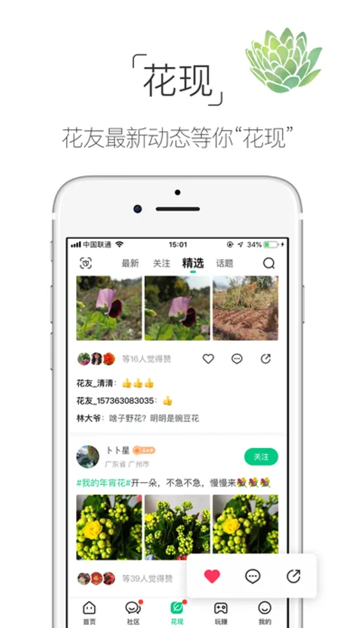 【花现】花友们都得有的花友圈,内有大量的花卉美图,上万花友晒花广场,与花友分享您的喜悦,让您以花会友!