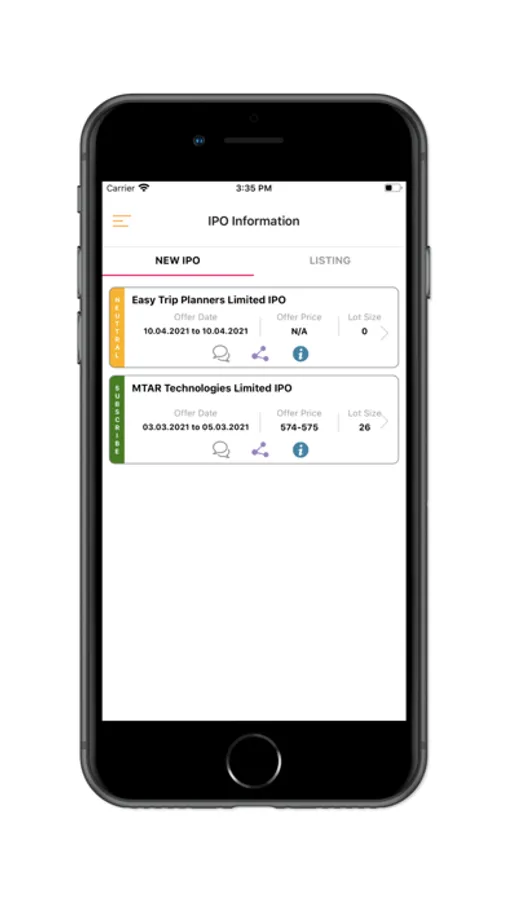 App also provides detail description for upcoming IPOs. So this may help you to find different investment options.