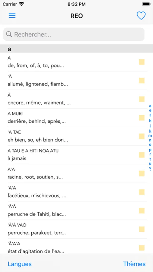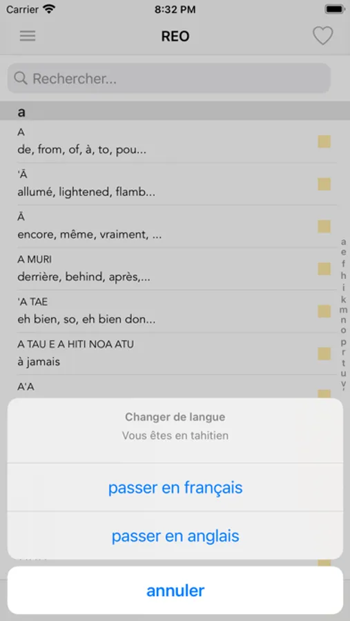 Le lexique du Service de la Traduction et de l'Interprétariat, c'est plus de 16000 mots en tahitien avec leur traduction en français et en anglais. Une application simple, fonctionnant sans connexion à Internet, pour débutants ou expérimentés de la langue tahitienne.