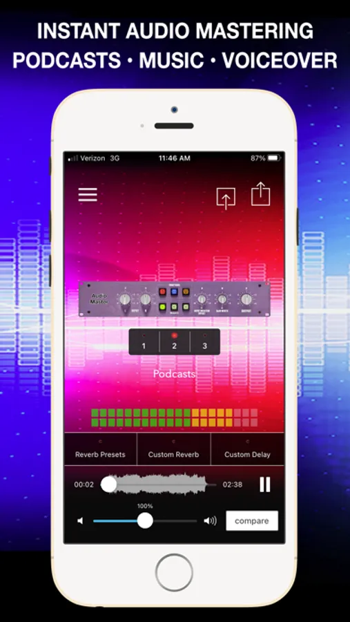 Musicians! Podcasters! Voiceover Artists! Let AudioMaster put the final touches on your audio. AudioMaster instantly maximizes the volume and enhances the sonic characteristics of your recording.