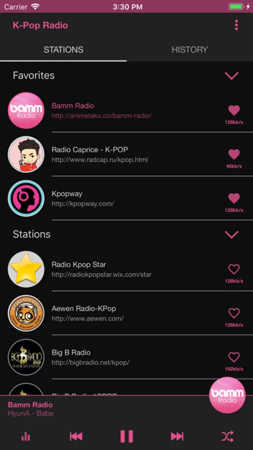 if you have k-pop radio station and want to see it in this app, just mail me and i'll add it!