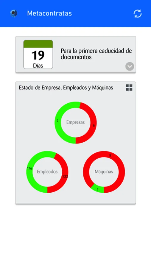 - El total de documentos de tu empresa, empleados y máquinas que tienes Ok, Expirados o Pendientes