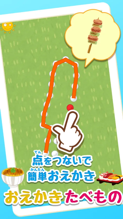 小さなお子様でも楽々!点をつなぐだけで簡単においそそうな食べ物の絵がかけます。