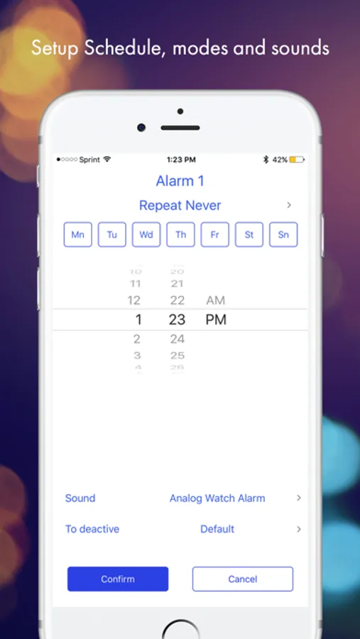 - If you want to make sure you wake up smiling every morning, choose the smile to turn off and a big smile is the only thing that will make your alarm stop.