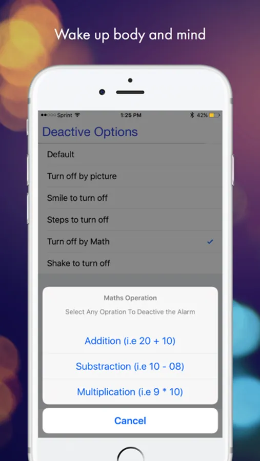 - If you want to wake up mentally active, choose the Math exercise turn off method and select one of the three different math options.