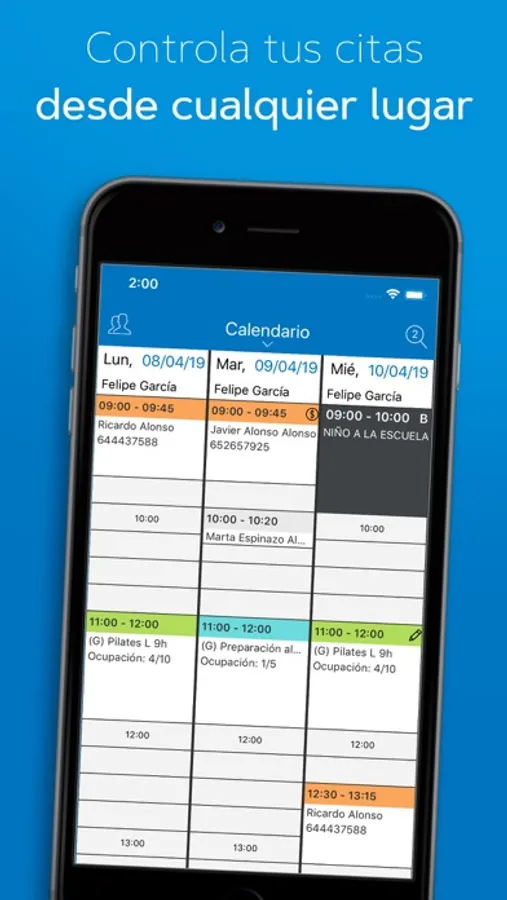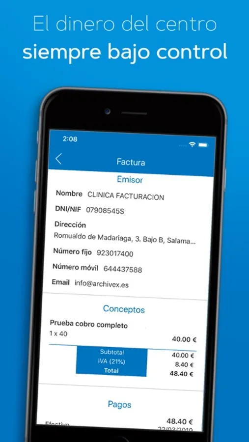 Gestión Integral: Administra tus citas, controla historiales de pacientes, gestiona bonos, volantes y facturas. Y sí, todo al alcance de tus dedos.