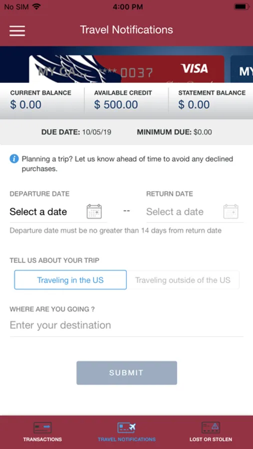 • Set up travel notification.