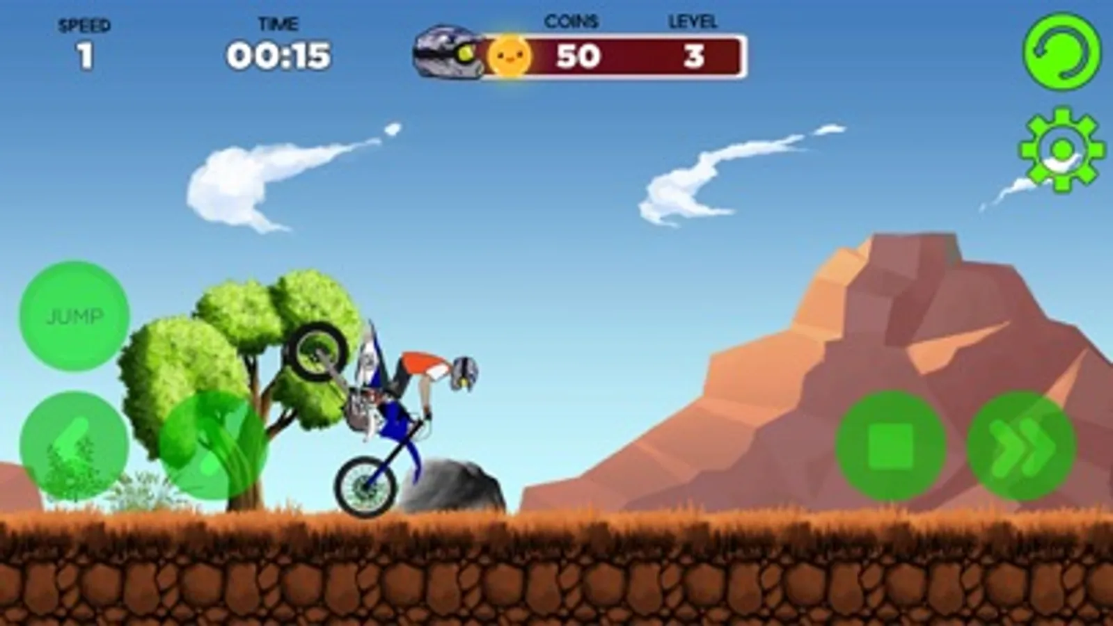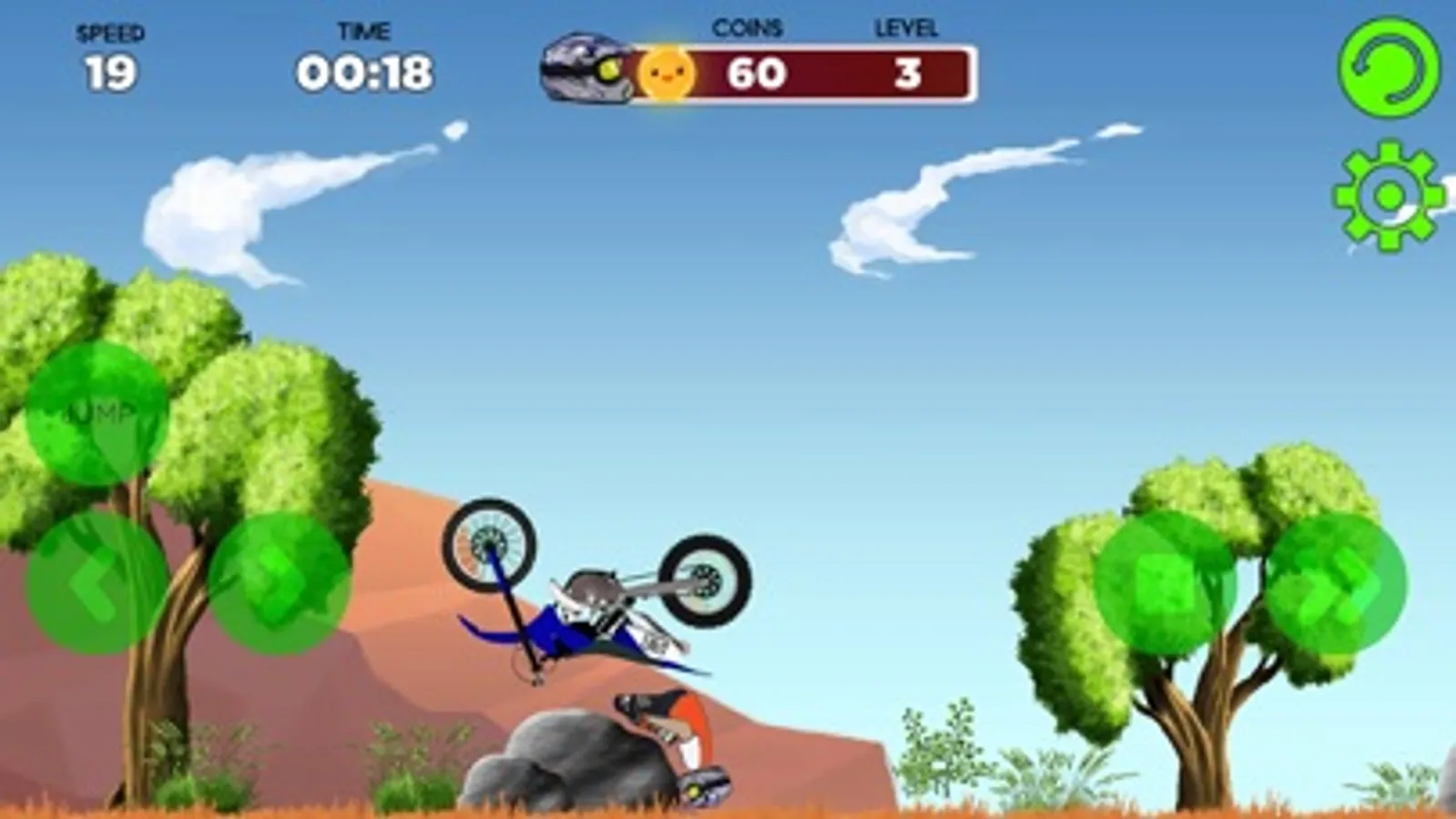 Ride the bike like a dirt track champion, jump, do pirouettes in the air, move forward and back to control the falls. You can also perform backflip for many turns, like in freestyle.