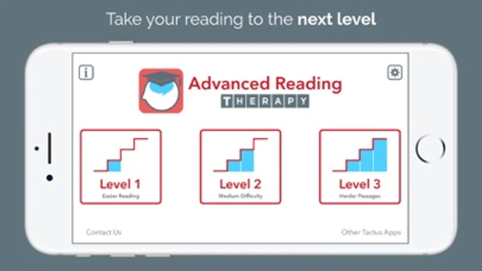 Tactus Therapy offers a wide variety of apps to help with reading comprehension. Advanced Reading Therapy is the next step in your rehab after mastering the single words in Comprehension Therapy, the phrases & sentences of Reading Therapy, and the complex sentences of Advanced Comprehension Therapy. All of our apps work together to help you reach your reading goals. Find the right apps for you with our App Finder at tactustherapy.com/find