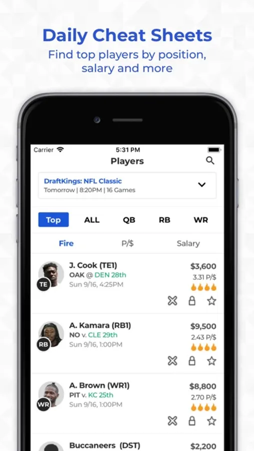 With RotoQL Express, get access to premier DraftKings and FanDuel cheat sheets and find players to build your lineups for tonight's games.