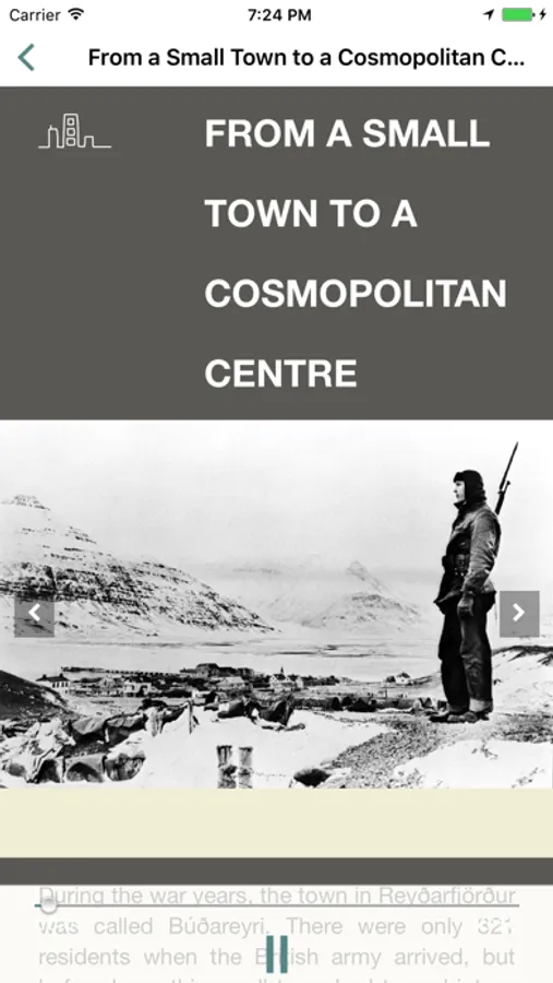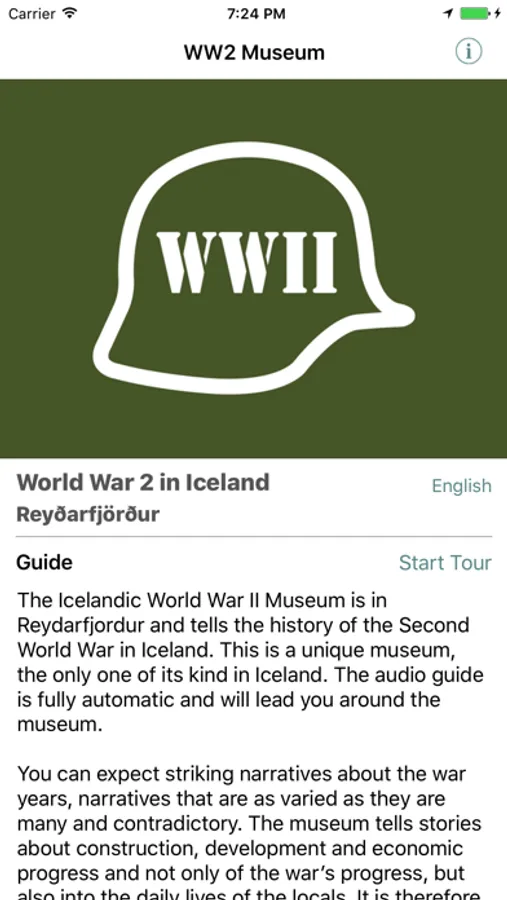 This automatic audio-guide is for the Icelandic World War II Museum in Reydarfjordur, Iceland. It tells the history of the Second World War in Iceland. This is a unique museum, the only one of its kind in Iceland. This audio guide app will lead you around the museum with automatic activation of the audio guide.