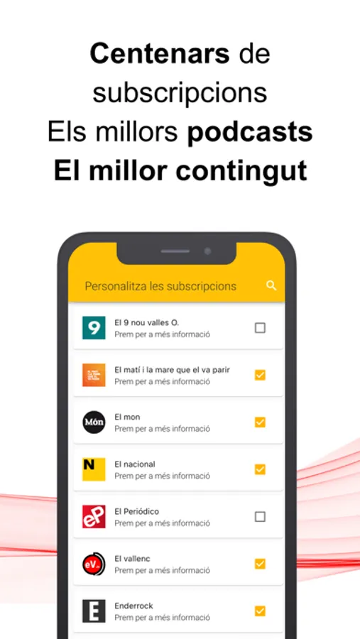 A més, tindràs accés a tots els podcasts del Diari Ara, La Grada Ràdio, RAC1, La competència, El Barça juga a RAC1, Catalunya al dia Barcelona, Catalunya al dia Tarragona, Al Dia. Terres de l’Ebre, Catalunya al dia Girona, Catalunya al dia Lleida, Tarragona Ràdio, Radio Estel, Informe Sala i Martín, Sentiment Lleidatà i molts d’altres.