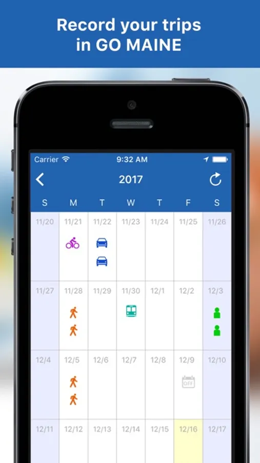 Simply record your carpool, vanpool, bus, walk, bike, telecommute, or rail trips in your GO MAINE account and earn points that can be redeemed for rewards.