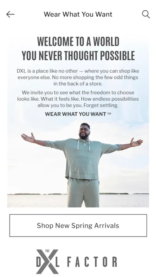 DXL is a place like no other — where you can shop like everyone else. No more shopping the few odd things in the back of a store.