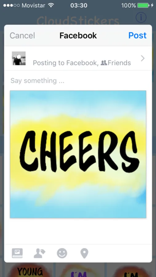 A full app for sharing Stickers with a Colorful message to all Social Networks.