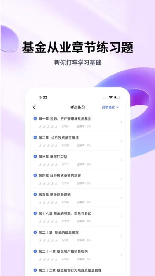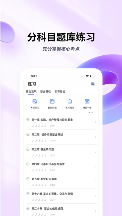 基金从业亿题库根据每一位考生的在线做题、模拟训练等结果进行智能分析,提供能力评估报告和考点掌握情况。方便考生查看复习,并有助于考生意识到自己学习的短板,从而有针对性的进行专项练习。0基础还用怕么?