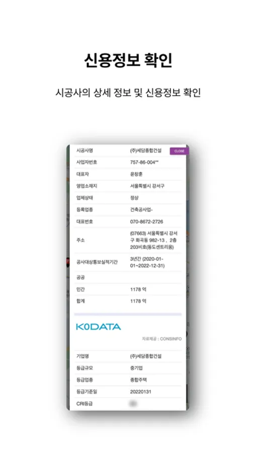 - 필요한 공사정보를 검색하고 연계해 시간과 비용을 대폭 절감하세요.