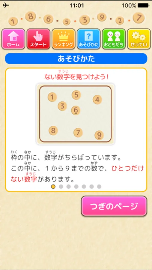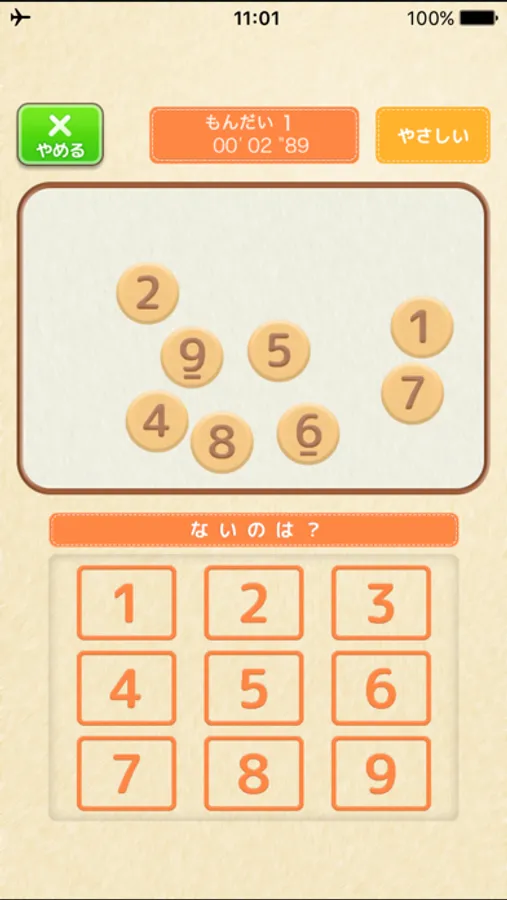 ・ない数字を見つけたら、素早くボタンをタッチしましょう。
