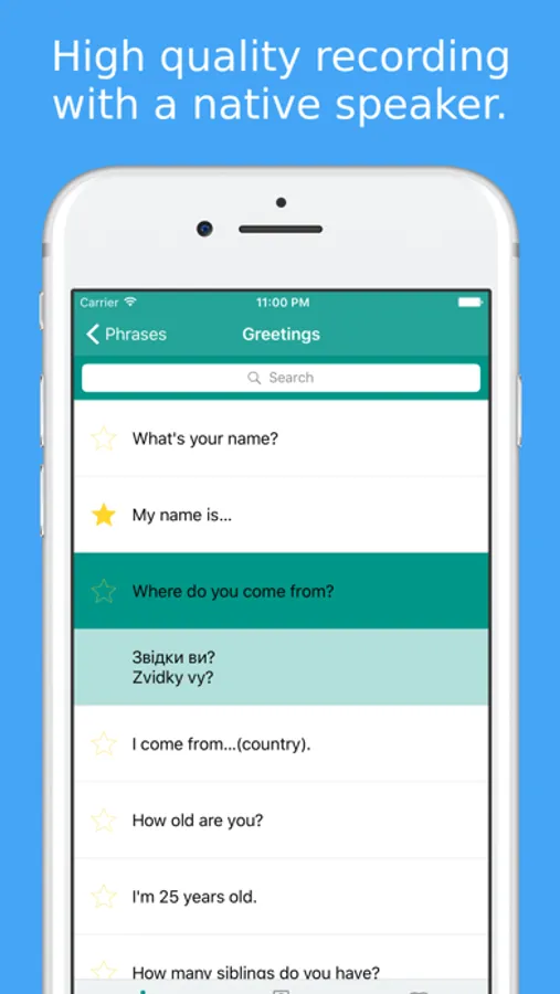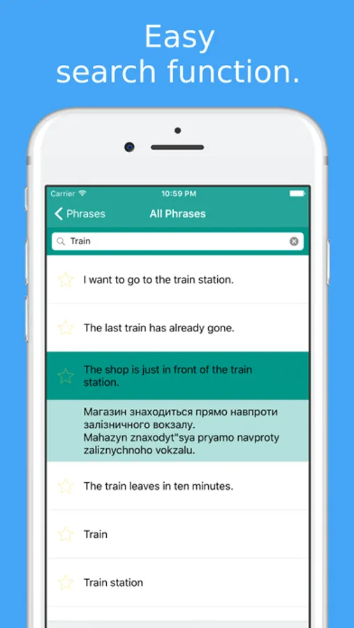 A detail view lets you learn every Ukrainian phrase and their English translation word by word. Save your favorite phrases and words to review them without fuss.