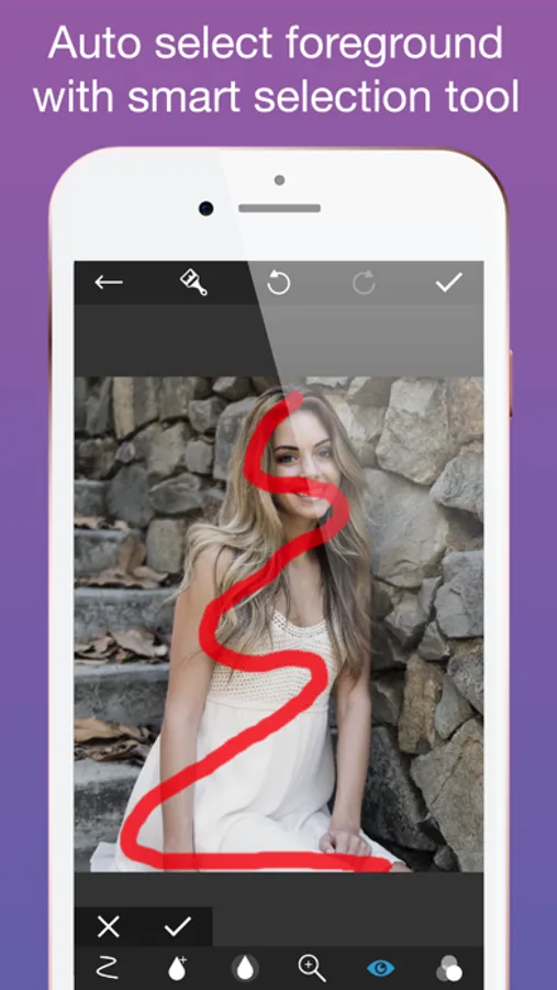 With smart selection tool, you just need to select some part of the main object, the app will auto-detect foreground and background, then make the background blurry.