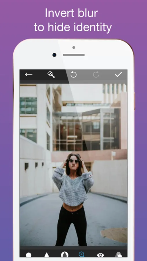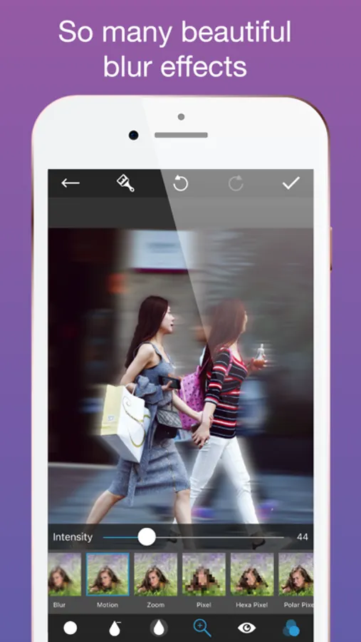 With over 15 blur effects, you can now choose the best blur effect to fit your need. Some of them are blur, motion, zoom, pixelate, Hexa pixelate, polar pixelate, glass, crystal, point, halftone, fun house, bloom, dot, hatch,...