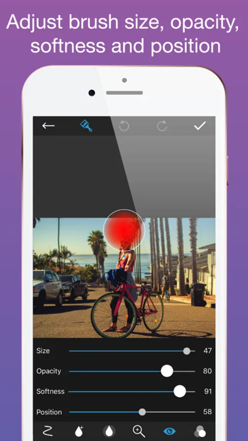 The brush is placed on top of your finger to help you easily see which part you're refining.