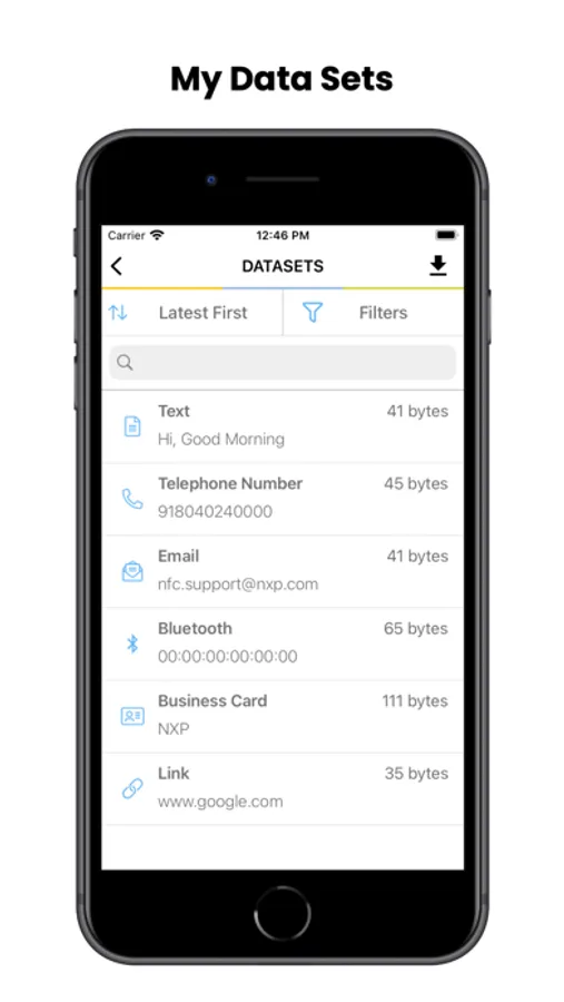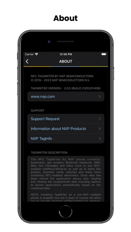 The NFC TagWriter by NXP Semiconductors, stores Contacts, Bookmarks, Geo location, Bluetooth, Handover, SMS, Mail and many more to any NFC enabled tags as well as to items like posters, business cards and many more containing NFC-enabled electronics. Once data has been stored the application allows reading and viewing the programmed data including options to launch applications automatically based on the contained data.