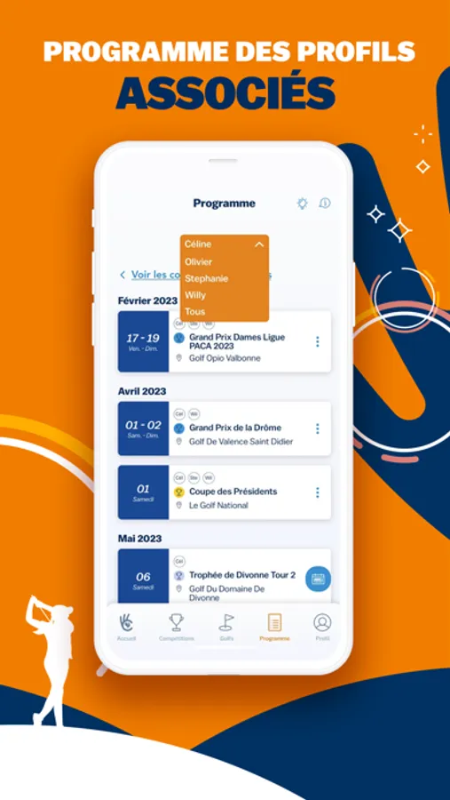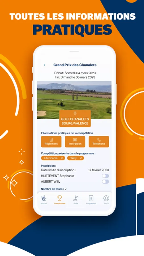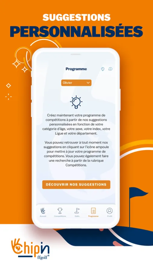 - Des suggestions automatiques et personnalisées en fonction de votre Ligue, département, âge, index, catégorie…