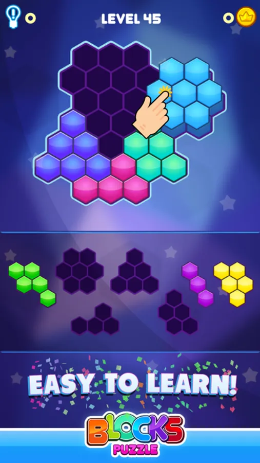 Drag and drop wacky shapes into increasingly complex patterns to complete levels in this easy to play, difficult to master puzzle game.