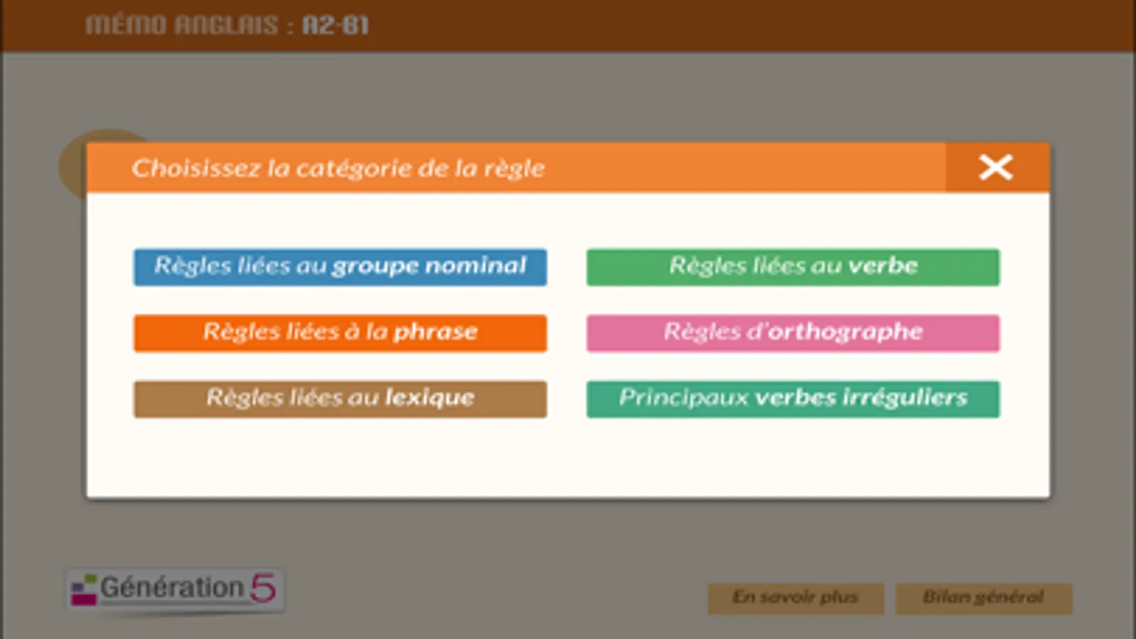 Cette application vient compléter le livret Mémo anglais A2-B1 destiné aux élèves de collège, qui présente les 64 règles et notions essentielles à connaitre pour maitriser la langue anglaise.