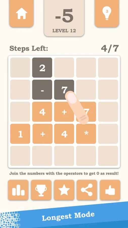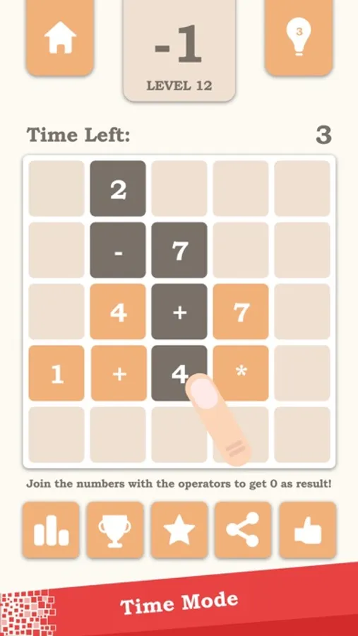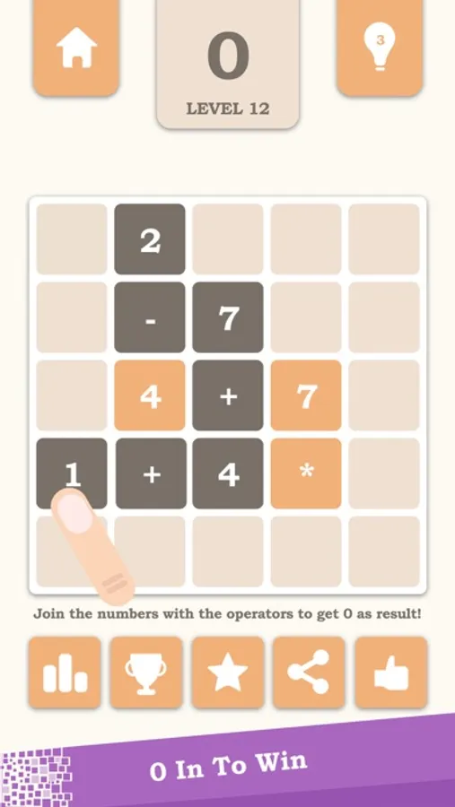 Download the best math puzzle on the Appstore. The gameplay is simple: join the numbers to get 0 as result.