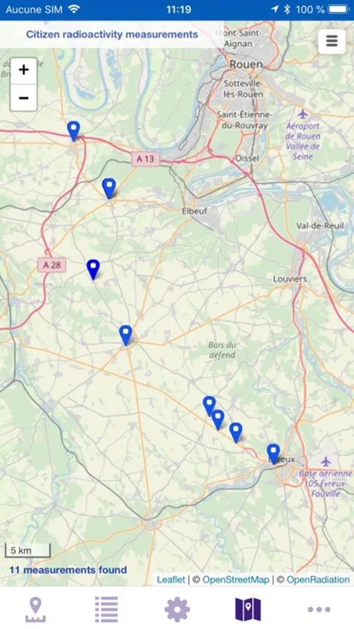 Create an account on the website www.openradiation.org, and obtain a compatible sensor (see the list of compatible sensors at www.openradiation.org). Activate Bluetooth under your mobile, configure your sensor to measure radioactivity, and publish your measurements. If you do not have a compatible sensor, you can always enter your measurements manually on the website or via the application.