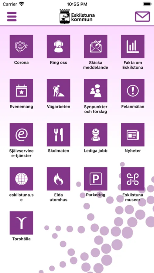 Appen Eskilstuna direkt är Eskilstuna kommuns officiella app. Genom den kan du kontakta oss för att ställa frågor, lämna synpunkter och göra felanmälan. Du kan ringa, chatta, skicka meddelande eller skriva till oss på sociala medier.