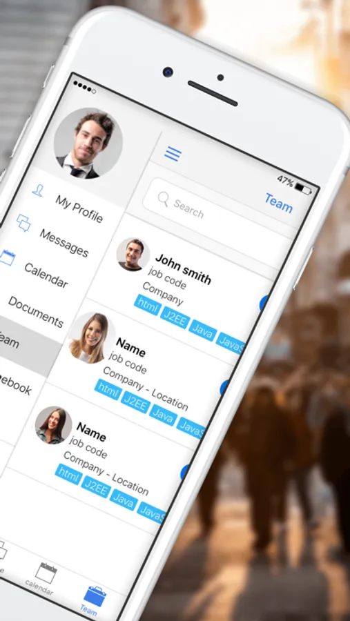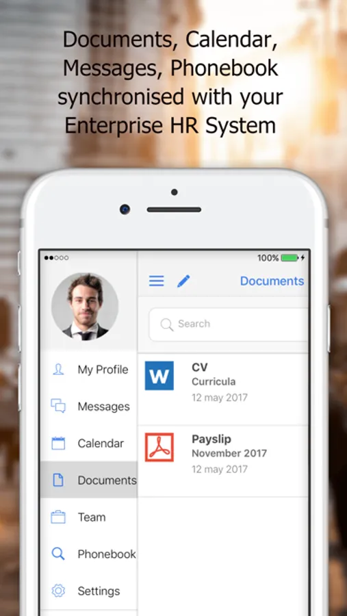 - A documents archive (curricula, certificates, qualifications, payslips, etc.), visible on your smartphone in any kind of size, synchronised with your current company system.