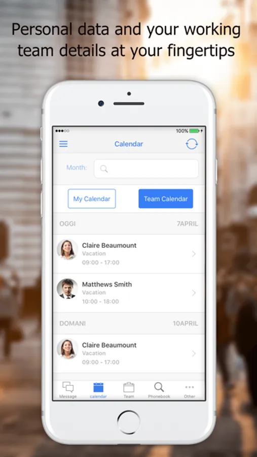 - Your calendar and your working team calendar, in order to have the holidays and time-off situation always under control.