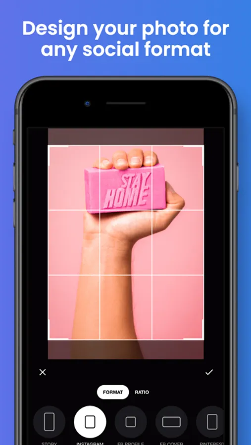 Resize photos to fit perfectly on every social network. Choose formats for Instagram, Instagram Stories, YouTube, Facebook, and more. Share your photos FULLY, in the ways they were meant to be shared!