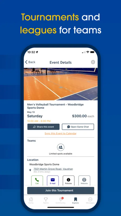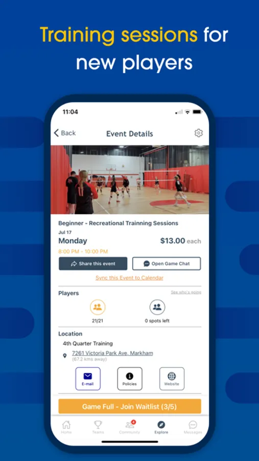 Join or create your own communities with full team management services. Perfect for anyone looking to manage private volleyball runs.