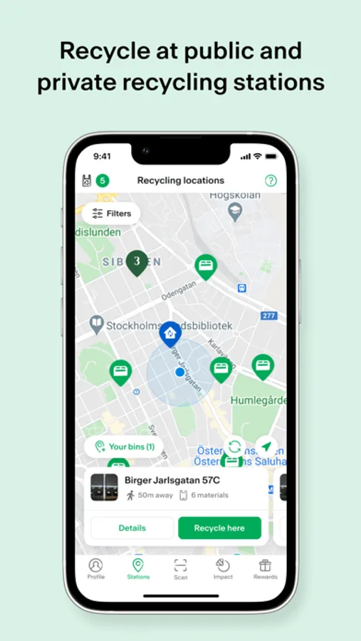 2. Recycle Right: Find your closest recycling station in the app or register your own. Dispose of items correctly and get rewarded!
